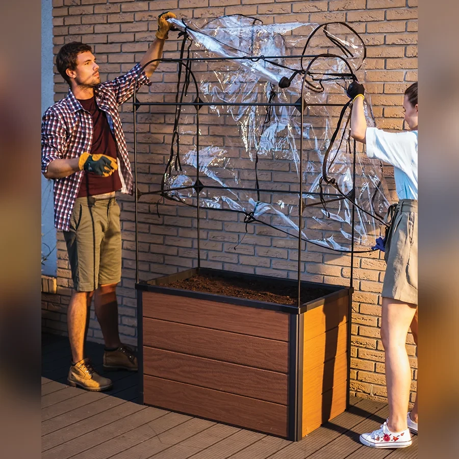Obrzeże grządki Maple Garden Bed sprawia, że uprawa warzyw i kwiatów jest przyjemna, łatwa i piękna. Produkty Maple są wykonane z nowoczesnego materiału kompozytowego Keter – Evotech™ i zapewniają dużą wytrzymałość, łatwy montaż oraz bezobsługowość, dzięki czemu Ty i Twoja rodzina możecie cieszyć się owocami swoich ogrodowych prac. Produkty Maple są dostępne w trzech wariantach: kwadratowe Maple Square i prostokątne Maple Trough służą jako atrakcyjne obrzeża do lokalizacji Twoich kwiatów i warzyw rosnących w ziemi. Natomiast Podstawa szklarni Maple Greenhouse z foliową osłoną pozwoli Ci uprawiać własne warzywa i zioła, nawet gdy jest zimno, deszczowo i wietrznie. Zastosowanie różnych wariantów ustawień umożliwiają realizację pięknych i funkcjonalnych aranżacji Twojego ogrodu.