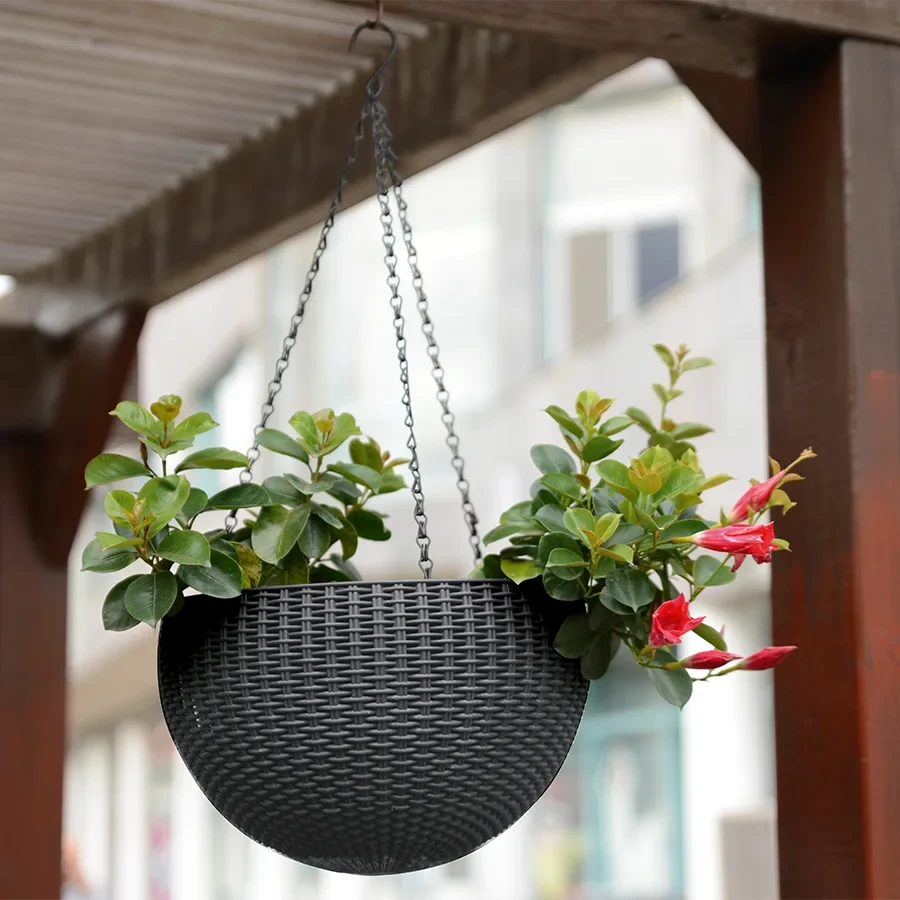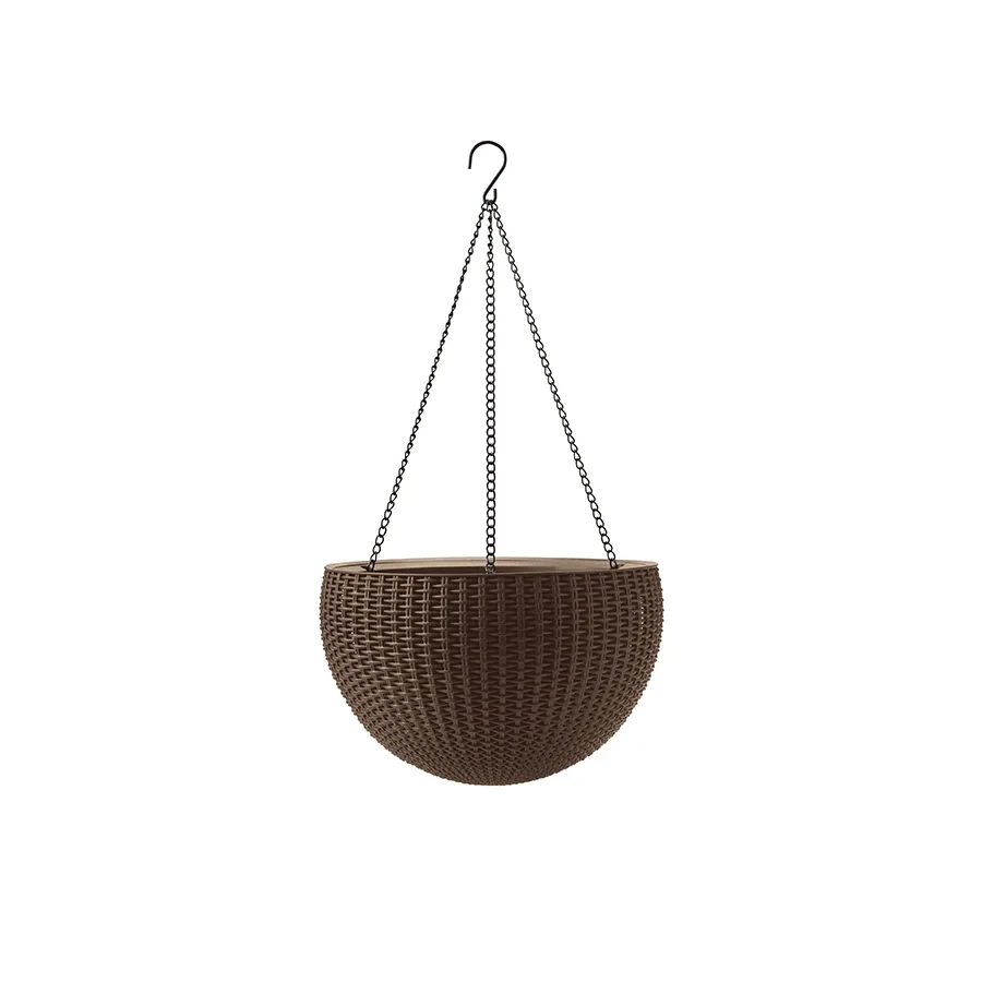 Okrągła, podwieszana donica HANGING SPHERE PLANTER doskonale sprawdzi się w każdym ogrodzie oraz wnętrzu mieszkalnym. Wykonanie bazujące na imitacji naturalnego rattanu oraz ponadczasowa stylistyka to jej główne atuty. Donica, dzięki zastosowaniu w produkcji wysokiej jakości tworzywa, pozostaje odporna na wpływ niekorzystnych czynników atmosferycznych. Pięknie wyeksponuje zarówno pnące, jak i klasyczne kompozycje kwiatowe.