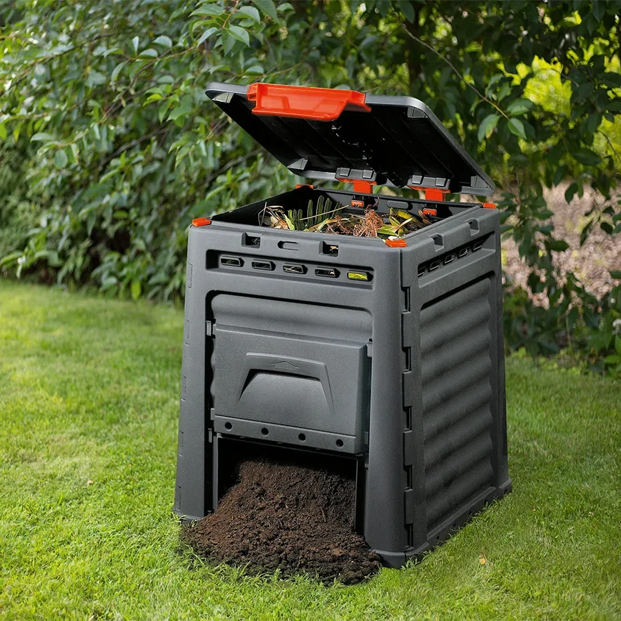 Kompostownik ECO COMPOSTER 320 L to doskonałe rozwiązanie dla każdego użytkownika ogrodu, który w trosce o środowisko przekształca odpady domowe i ogrodowe w nawóz dla roślin, dbając tym samym o środowisko naturalne. Łatwy montaż, stabilna konstrukcja oraz wygodnie zamykana pokrywa to cechy charakterystyczne tego produktu. Kompostownik wykonano z materiałów pochodzących z recyklingu, nadających się do ponownego przetworzenia.