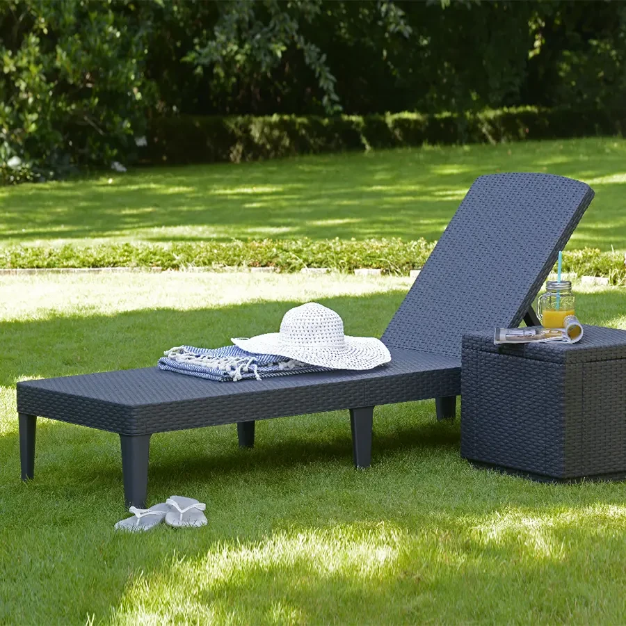 Funkcjonalny leżak ogrodowy Jaipur o powierzchni przypominającej fakturę naturalnego rattanu to gwarancja komfortowego wypoczynku. Przemyślana konstrukcja pozwala na złożenie leżaka do wymiarów małej podręcznej walizeczki. Regulowane, 4 pozycyjne oparcie jest dodatkową cechą podnoszącą komfort jego użytkowania. Czyszczenie miękką ściereczką z dodatkiem wody i detergentu. Odporny na warunki atmosferyczne i promienie UV.