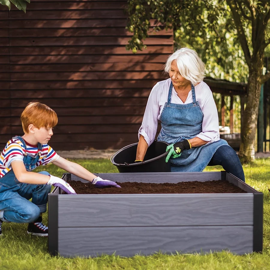 Obrzeże grządki Maple Garden Bed sprawia, że uprawa warzyw i kwiatów jest przyjemna, łatwa i piękna. Produkty Maple są wykonane z nowoczesnego materiału kompozytowego Keter – Evotech™ i zapewniają dużą wytrzymałość, łatwy montaż oraz bezobsługowość, dzięki czemu Ty i Twoja rodzina możecie cieszyć się owocami swoich ogrodowych prac. Produkty Maple są dostępne w trzech wariantach: kwadratowe Maple Square i prostokątne Maple Trough służą jako atrakcyjne obrzeża do lokalizacji Twoich kwiatów i warzyw rosnących w ziemi. Natomiast Podstawa szklarni Maple Greenhouse z foliową osłoną pozwoli Ci uprawiać własne warzywa i zioła, nawet gdy jest zimno, deszczowo i wietrznie. Zastosowanie różnych wariantów ustawień umożliwiają realizację pięknych i funkcjonalnych aranżacji Twojego ogrodu.