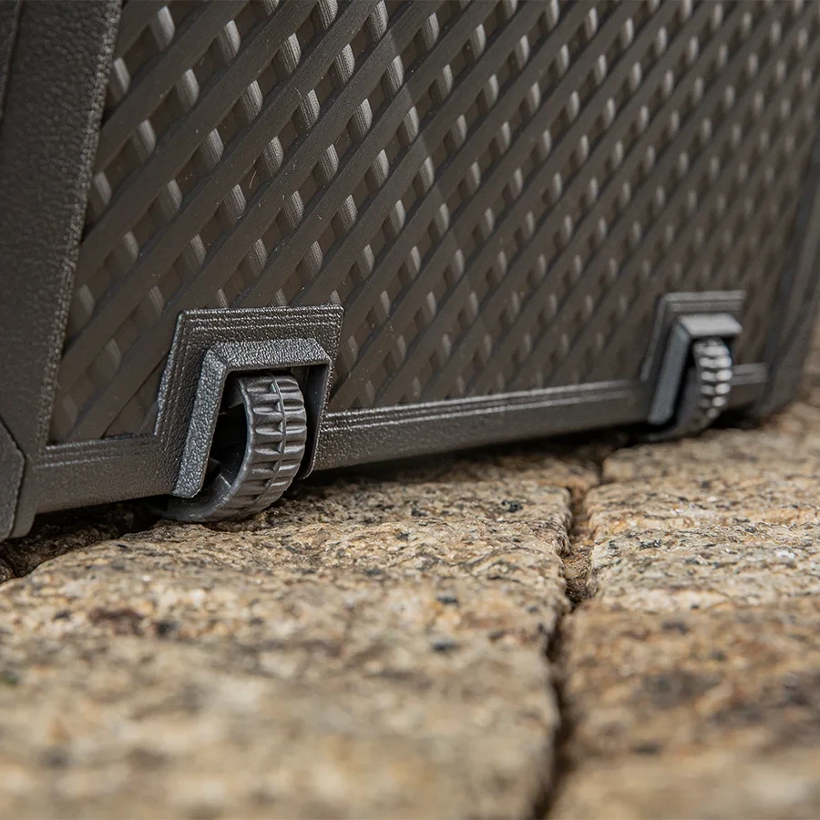 Prostota formy oraz łatwy i szybki montaż to główne atuty uniwersalnej skrzyni Emily 270L. Skrzynia przeznaczona jest do przechowywania różnorodnych narzędzi i akcesoriów ogrodowych, poduszek oraz zabawek dziecięcych. Nowoczesna stylistyka i klasyczna kolorystyka umożliwiają dopasowanie skrzyni do każdego wystroju ogrodu. Świetnie komponuje się z zestawami meblowymi Linii Emily. Jest to także idealne rozwiązanie na taras czy patio.