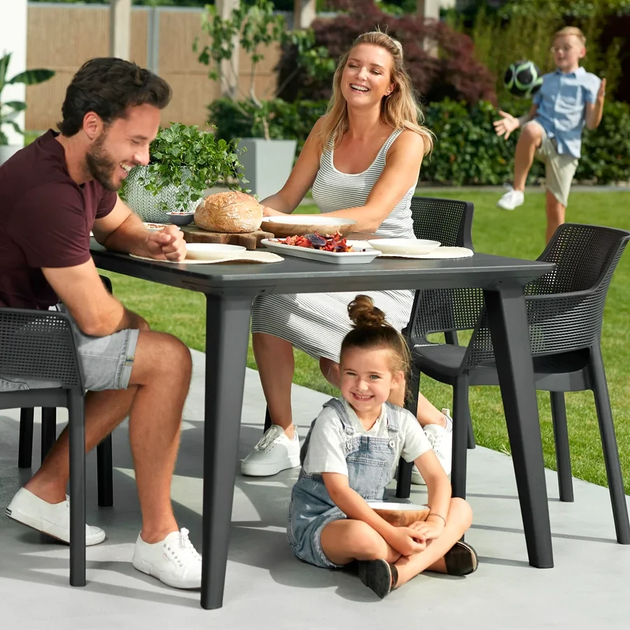 Prosta, uniwersalna forma to główna zaleta funkcjonalnego stołu Lima 160. Dzięki niej produkt można dopasować do aranżacji w każdym stylu – zarówno klasycznym, jak i bardzo nowoczesnym. Szeroki blat sprawdzi się podczas dużych, rodzinnych biesiad lub spotkań z przyjaciółmi w ogrodzie. Stół jest bardzo prosty w montażu i utrzymaniu w czystości; odporny na działanie niekorzystnych warunków atmosferycznych.