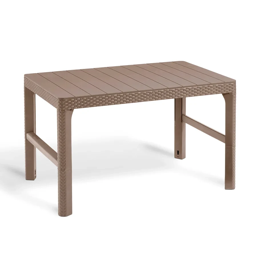 Dwupozycyjny stół Lyon jest niezwykle funkcjonalnym rozwiązaniem pozwalającym na organizację przestrzeni w zależności od potrzeb użytkowników. Konstrukcja umożliwia ustawienie stołu w 2 wariantach: niskim (coffee) lub wysokim (dining), idealnym do spożywania posiłków. Prosty w swej formie, komfortowy w użytkowaniu i bardzo łatwy w montażu oraz obsłudze. Odporny na niekorzystne warunki atmosferyczne oraz promienie UV.