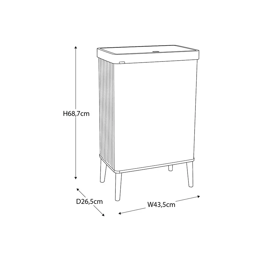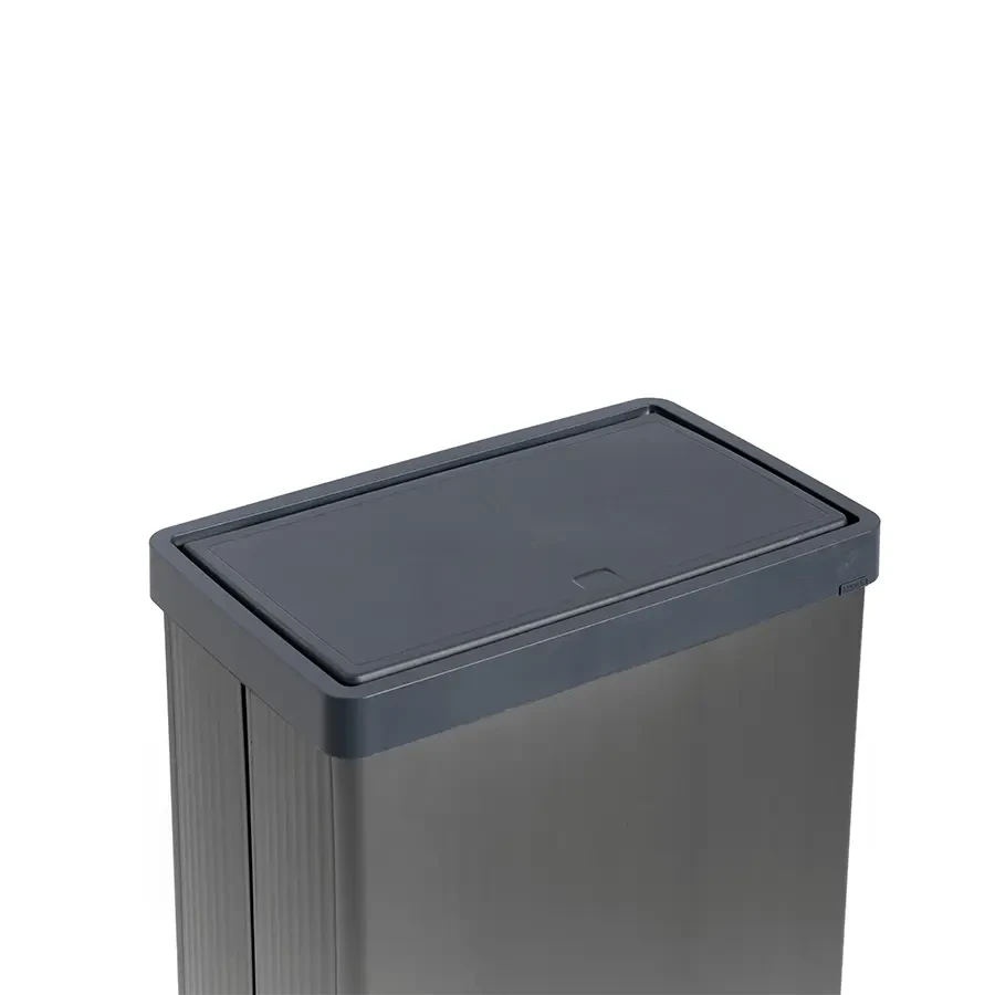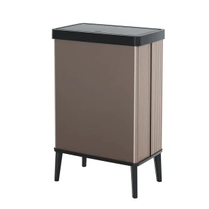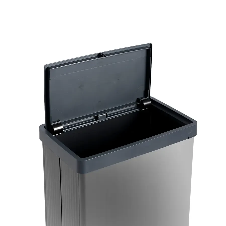 Kosz ma pojemność 54L i szeroką pokrywę z funkcją otwierania za pomocą dotyku, a worek na śmieci można dyskretnie ukryć wewnątrz. Wysokie nóżki zapewniają dodatkową przestrzeń pod koszem, ułatwiając sprzątanie, a także umożliwiają wygodną obsługę bez konieczności schylania się.