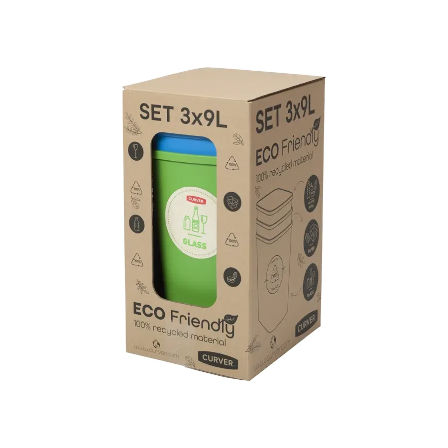 Zestaw koszy ECO Friendly to świetne rozwiązanie do segregacji odpadów. Dostępne są w dedykowanych kolorach ze specjalnymi etykietami, które pozwalają na łatwe zidentyfikowanie kategorii odpadów; żółty na metale i tworzywa sztuczne, niebieski na papier oraz zielony na szkło. Minimalistyczny design pozwoli dopasować się do wnętrza każdej kuchni, a smukły kształt doskonale sprawdzi się w ograniczonych przestrzeniach.