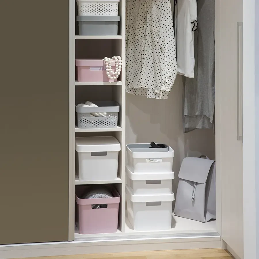 Pojemniki Infinity Recycled to uniwersalne rozwiązanie do przechowywania, które pozwala na łatwe uporządkowanie rzeczy w całym domu. Dzięki nowoczesnemu i minimalistycznemu wykończeniu, inspirowanemu stylem skandynawskim, pojemnik pasuje do każdego wystroju wnętrz. Dzięki wygodnym uchwytom, pojemnik jest łatwy do przenoszenia z jednego miejsca na drugie. W celu zapewnienia ochrony przed kurzem, pojemnik wyposażony jest w pokrywę, która zapewnia bezpieczne przechowywanie przedmiotów. Możliwość sztaplowania i ustawiania jeden na drugim pozwala na efektywne przechowywanie nawet w małych pomieszczeniach, a modułowe kształty umożliwiają wiele sposobów składowania. Pojemniki Infinity Recycled są łatwe do czyszczenia i wykonane w 100% z tworzywa sztucznego pochodzącego z recyklingu, co czyni je przyjaznymi dla środowiska.