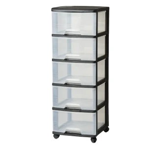 Mobilny regał z szufladami to rozwiązanie, które doskonale sprawdzi zarówno w domu, jak i w przestrzeni publicznej np. salony fryzjerskie, kosmetyczne itd. Dostępne są trzy wersje produktu z trzema, czterema lub pięcioma szufladami, w zależności od zapotrzebowania. Dwudziestolitrowe szuflady są przezroczyste, dzięki czemu zawartość szuflad jest widoczna. Podstawą konstrukcji jest stojak na kółkach, wykonany z wysokiej jakości tworzywa. Regał doskonale sprawdzi się w każdej przestrzeni, np. roli kontenera przy biurku, szafki łazienkowej, czy małej komody na dziecięce zabawki i ubranka. Jego nowoczesny design, oparty na prostocie formy sprawi, że idealnie będzie pasował do każdej aranżacji wnętrz.