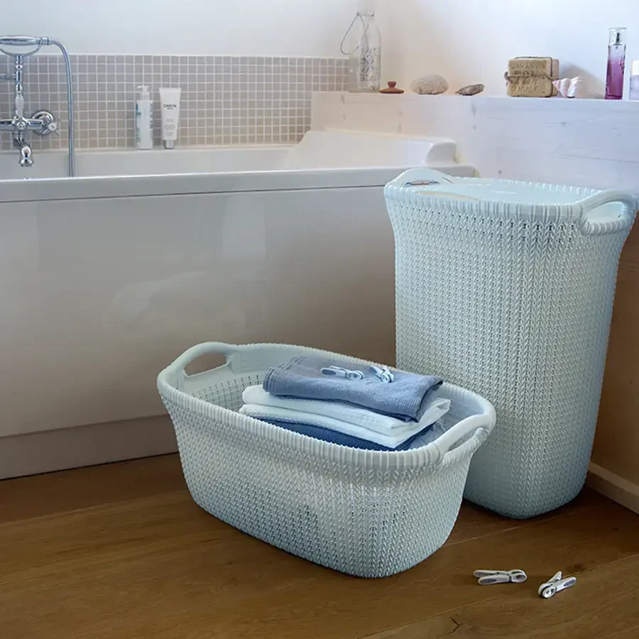 Kosz na bieliznę KNIT 57l to praktyczny i stylowy wybór dla każdego domu. Jego kształt został zaprojektowany w taki sposób, aby idealnie pasował do łazienki, pomieszczenia gospodarczego czy sypialni. Ekskluzywny wygląd i styl kosza wynikają z jego tekstury imitującej dziergany splot. Wzmocniona rama i 2 uchwyty zapewniają ergonomiczne użytkowanie, a pokrywa otwierana pod kątem 270° ułatwia napełnianie i opróżnianie kosza. Ażurowa konstrukcja zapewnia cyrkulację powietrza, co zapobiega kumulowaniu się nieprzyjemnych zapachów. Kosz na brudną bieliznę KNIT 57l to nie tylko funkcjonalne rozwiązanie, ale również ozdoba każdej łazienki czy sypialni.