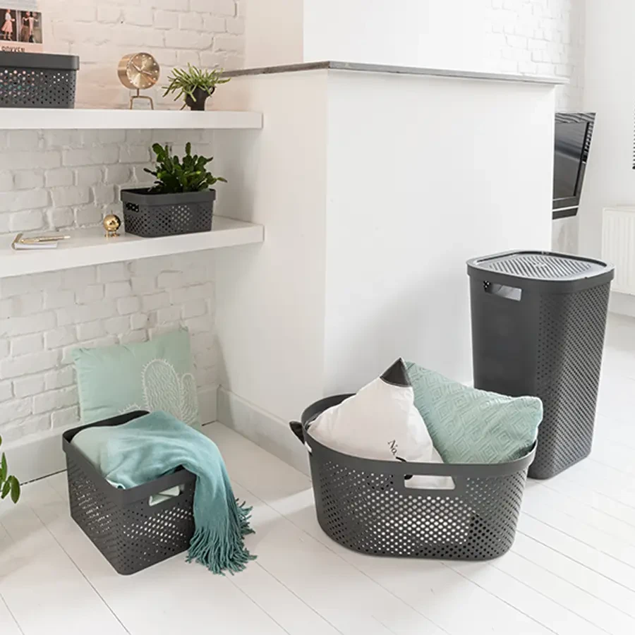 Niezbędny w każdej łazience, pralni, pomieszczeniu gospodarczym czy suszarni kosz do magla Infinity zachwyca zarówno swoją funkcjonalnością, jak i estetyką wykonania. Wpisuje się w potrzeby każdego gospodarstwa domowego, które ceni sobie wygodę przy wykonywaniu codziennych obowiązków. To pomocnik idealny przy wywieszaniu prania, jak i podczas jego prasowania. Dzięki 4 uchwytom ułatwiającym trzymanie na różne sposoby można go łatwo przenosić między pomieszczeniami. Wykonany jest w 100% z tworzywa pochodzącego z recyklingu, jest niezbędny w każdym domostwie, gdzie ceni się ekologię!